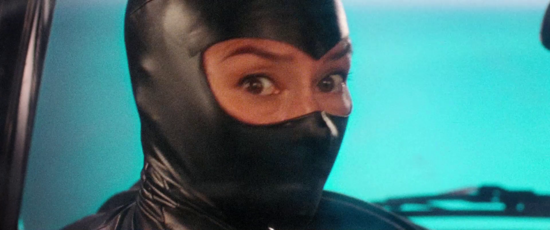 A shame that she unmasks herself. I have found her in only one other scene in costume in the movie.